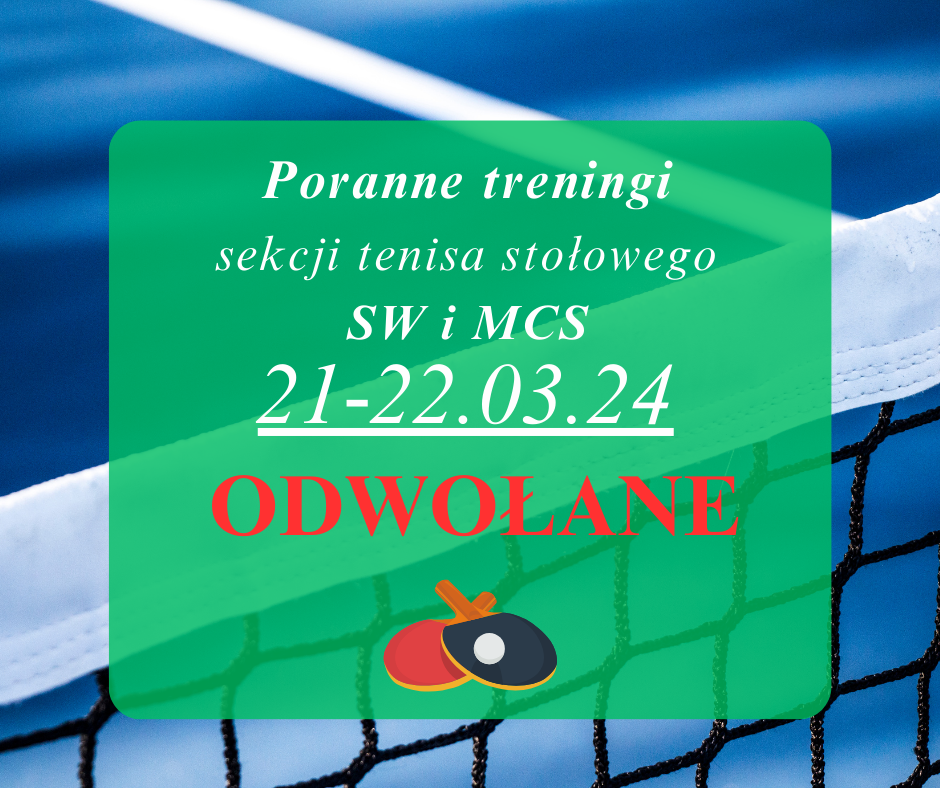 Wydarzenia Odwołane poranne treningi sekcji tenisa stołowego admin 20 marca 2024 Informujemy, że z powodu wyjazdu zawodniczek i trenerów na Mistrzostwa Polski w Gdańsku. Treningi (SW i MCS) zostały odwołane w dniach:CZWARTEK 21.03.2024 – 7:00 – trening odwołany PIĄTEK 22.03.2024 – 7:00 – trening odwołany Continue Reading Previous Previous post: Poprzedni wpisNext Next post: Port Lotniczy Wrocław partnerem KU AZS UE Related News Trening w ramach ACGR 18.10.25 15 października 2025 Trening w ramach ACGR 5.10 1 października 2025